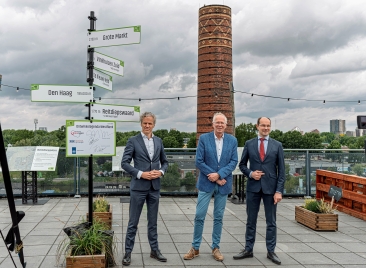 De dag begon met de ondertekening van de ontwikkelagenda voor de Westflank van de stad Groningen. Hierin hebben de gemeente, provincie en het rijk de afspraak gemaakt om tot 2040 175 miljoen euro te investeren in de bereikbaarheid en leefbaarheid van de westkant van de stad. Directeur Realisatie Wonen van het ministerie van Volkshuisvesting en Ruimtelijke Ordening, Jacos van Zelst, wethouder Philip Broeksma en gedeputeerde Erik Jan Bennema van de provincie Groningen zetten hiervoor op het dak van het oude Zeefgebouw hun handtekening.