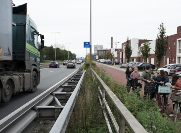 Foto: Ring West ter hoogte van de Reitdiepzone. De ringweg ligt hier pal naast de woningen.